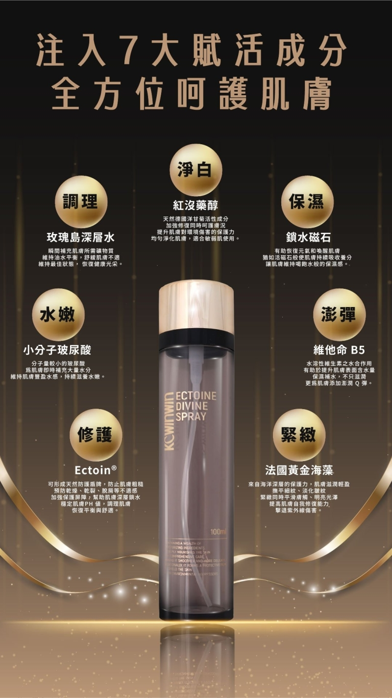 來自法國純淨海域的有機成分與2%的依克多因等多種保濕成分製成