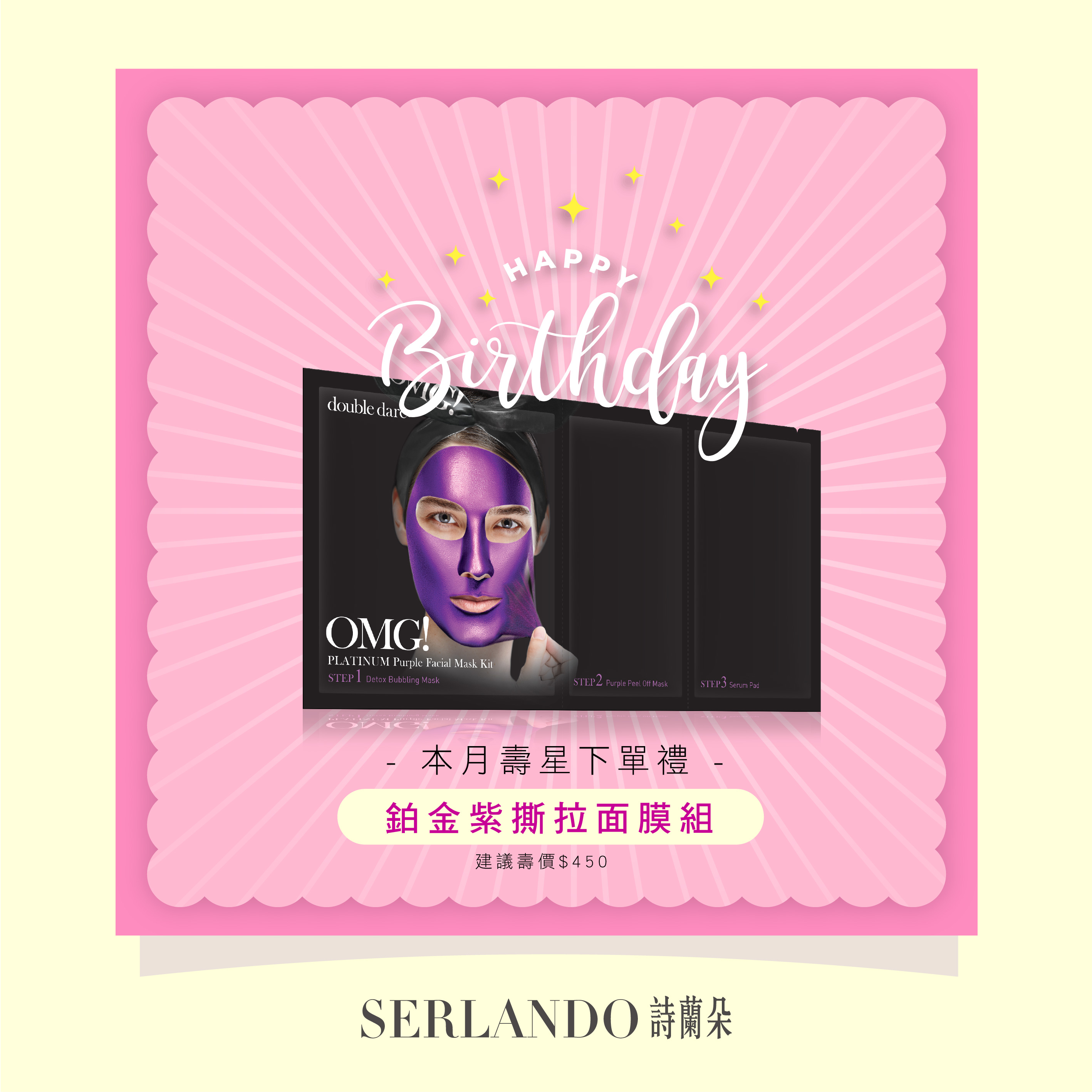 8月壽星生日禮 [ double dare 鉑金緊緻紫撕拉面膜 ]單片,下單即刻送給您! | SERLANDO 詩蘭朵|官方旗艦店 - 局部修護&刺青保養專家