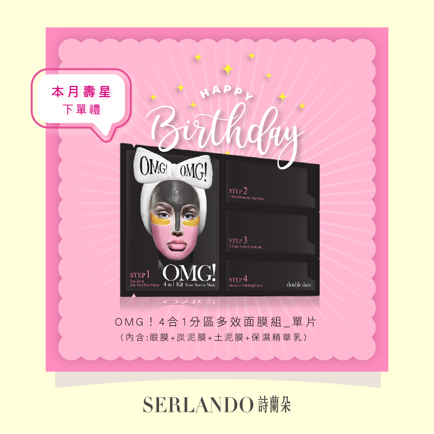 10月壽星生日禮 [ double dare 四合一分區多效面膜組 ]單片,下單即刻送給您!