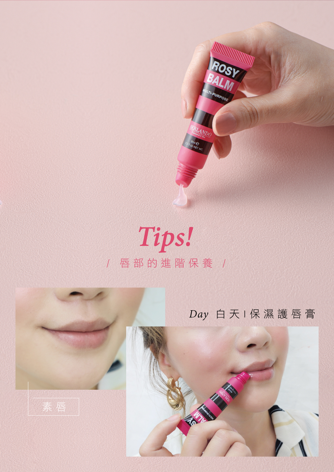 - 白天可當塗口紅前的護唇膏&隔離品;晚上可厚敷做為唇膜使用