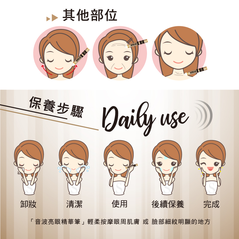 - 獨特音波震動筆+陶瓷滾珠,幫助全效精華導入又紓壓