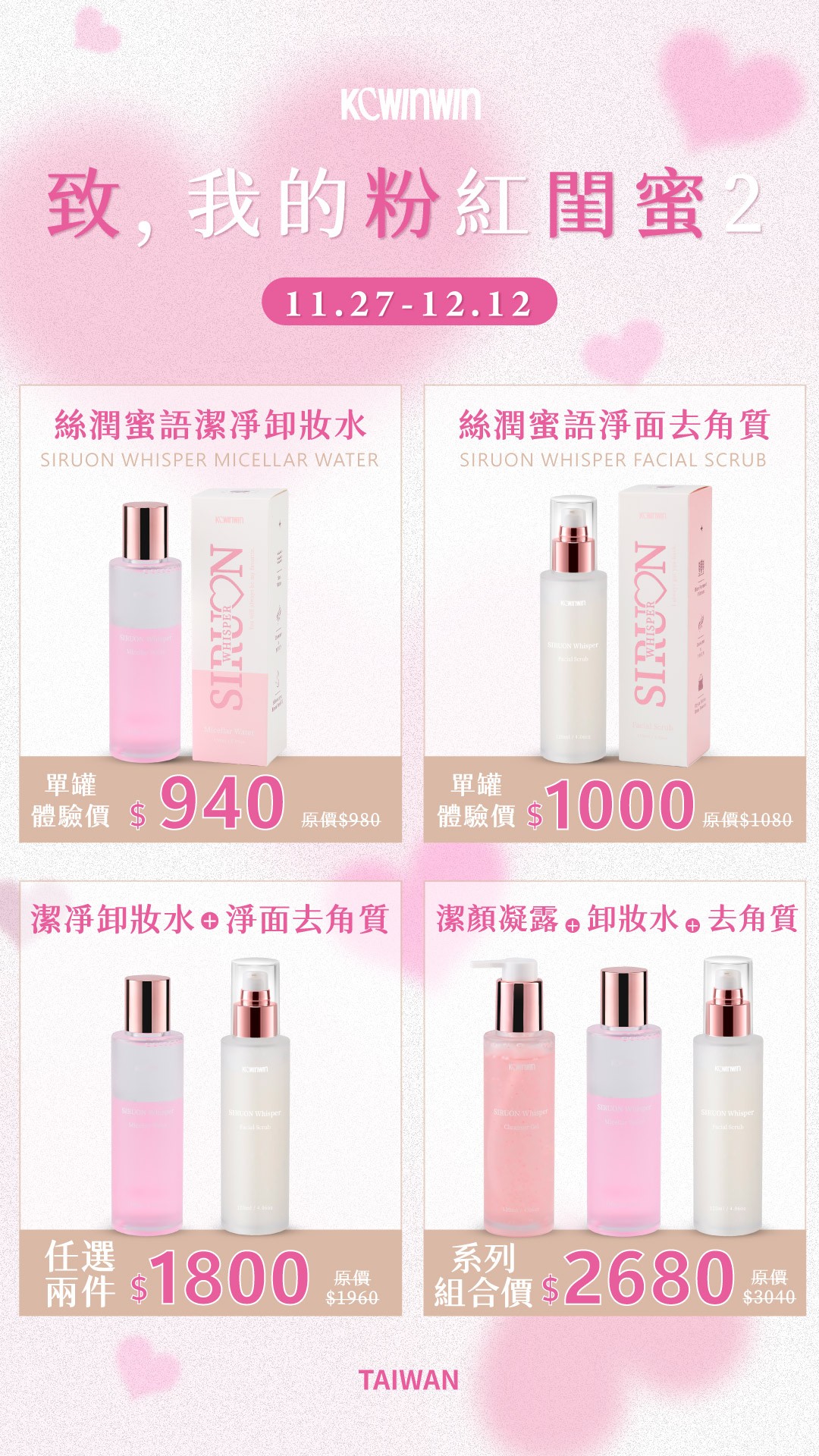 K.C WIN-WIN|【限時優惠】絲潤蜜語 潔顏凝露*1+卸妝水*1+去角質*1